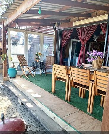 Approved plans for adding a dressing room or another bedroom, enclosing the outdoor patio, installation of a built in braai as well as for extending the deck. Interleading garage with lockable coated alluminium and glass door. Five, floor to ceiling coated alluminium stack doors leading to the deck facing the dam. Air-conditioner Inverter installed. Street parking for two cars. Boat parking optional and allocated by the WYC Committee.