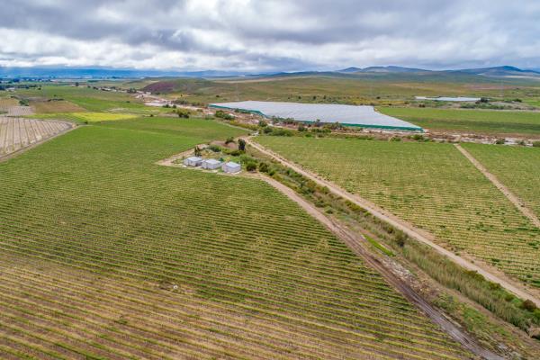The farm has a reliable water source and is licensed for 785 081 m (105,38 ha @ 7 450 m / ha) water from the Worcester East Water Users Association, featuring a well-designed, computerised and integrated irrigation system. Water stored in 3 earthen dams.