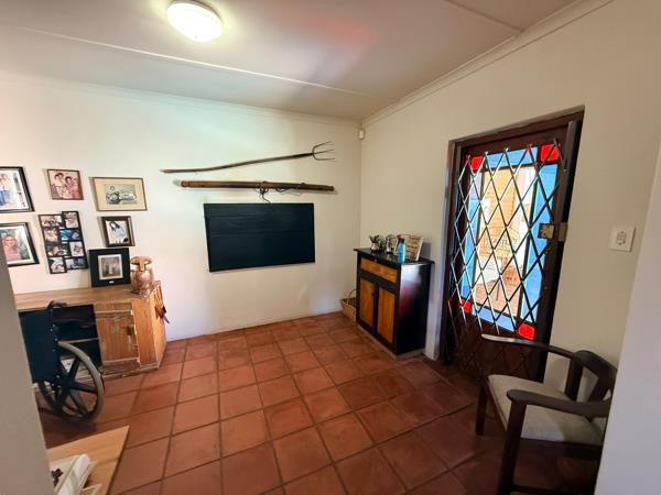 The property offers three generously sized en-suite bedrooms, multiple living areas including a cozy lounge with fireplace, and an indoor braai room ideal for effortless entertaining. A well-appointed kitchen with ample cupboards and a separate scullery ensures practical everyday living. Upstairs, an additional open area provides the perfect space for a second lounge, studio or home office.