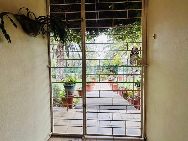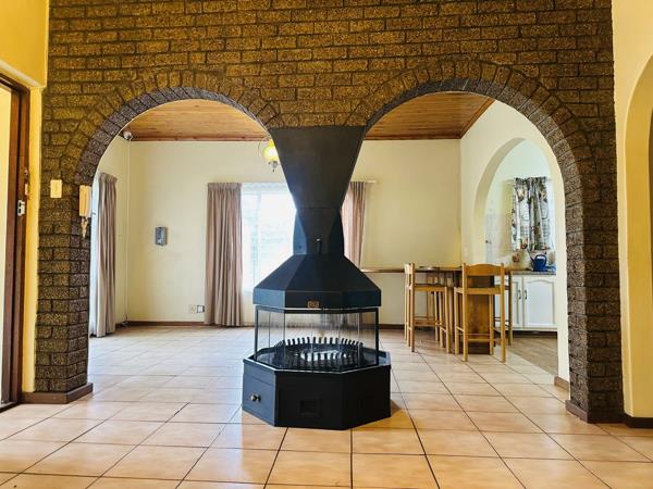 Massive enclosed braai area, with built in braai, opening onto a large, well-established back garden.