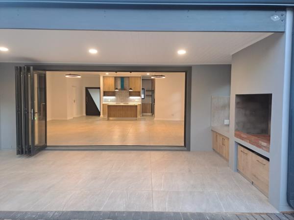 The living area flows effortlessly onto a covered braai area, perfect for indoor-outdoor living and easily integrated into the main living space.