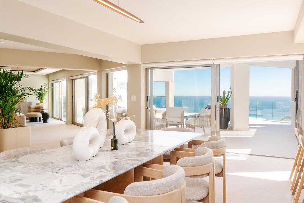 Enjoy breathtaking 180-degree views of the Atlantic Ocean from every level. From the dramatic road-level entrance, descend through five stunning floors that epitomize elegance, all set against the majestic backdrop of Lions Head Mountain.