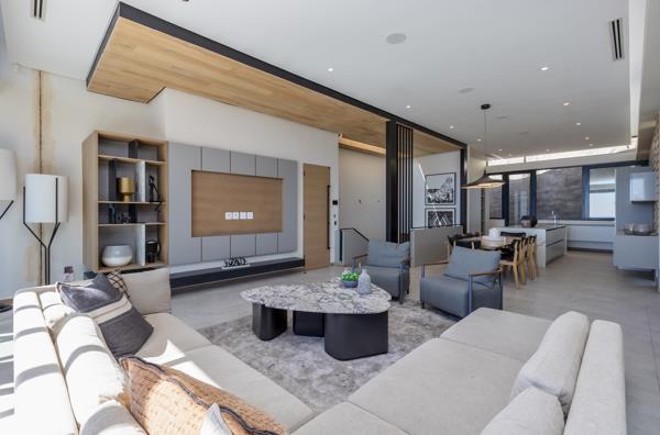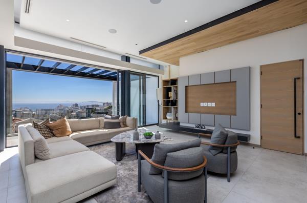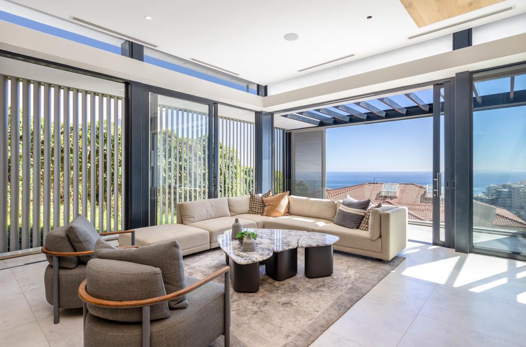 The main living area is spread over the top floor , with direct elevator access from the ground level. The space features a spacious open-plan layout with floor-to-ceiling glass, allowing for plenty of natural light and incredible views. The imported kitchen includes a scullery and breakfast counter and flows into the dining area, lounge, and a balcony that overlooks the ocean.