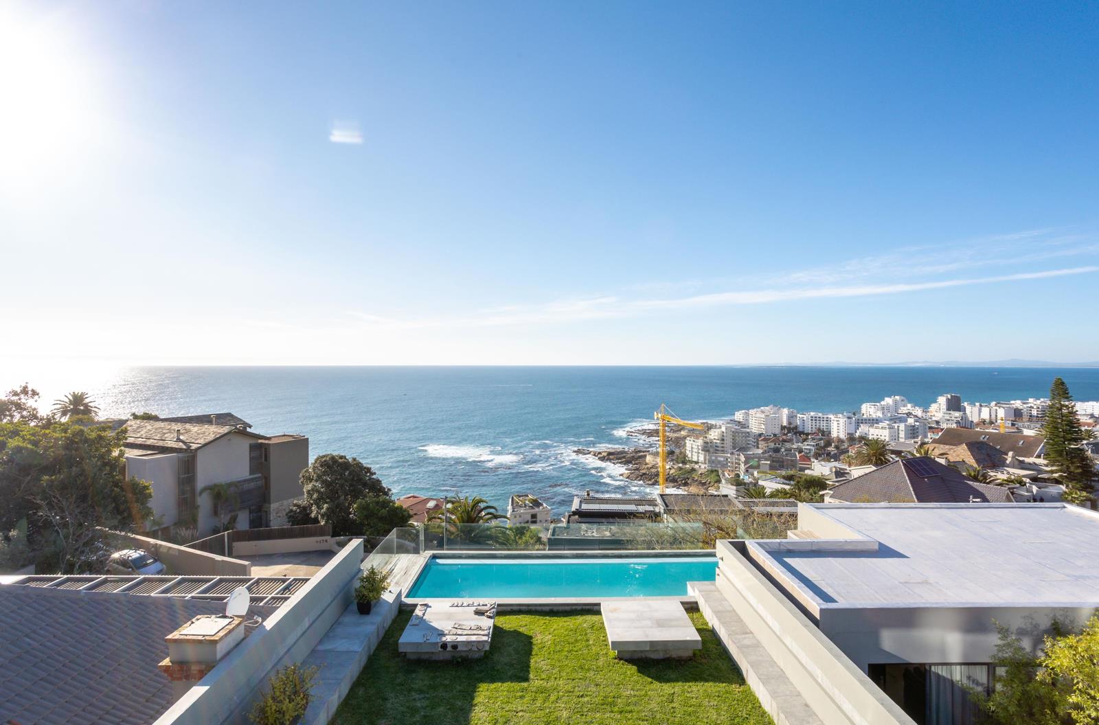 This modern home in Cape Towns most sought after area offers impressive ocean views and well designed living spaces. Located on the slopes of Bantry Bay, this four level property features open plan areas with large windows that showcase the Atlantic horizon from almost every room. A grey marble staircase and private lift connect the floors, enhancing accessibility and flow.