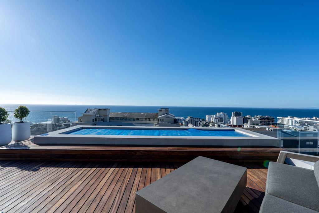 For security and convenience there are solar panels and an inverter, 2 undercover security parking bays plus large 14sqm storeroom. Situated in wind free Bantry Bay this penthouse offers proximity to shops, restaurants and beaches. Dont miss the opportunity to elevate your living experience. Special levy of R3924 per month. Short term lets not permitted. Pets with permission.