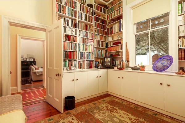 An additional room on the ground floor, currently used as a library, offers flexibility as a fifth bedroom, home office, or studio.