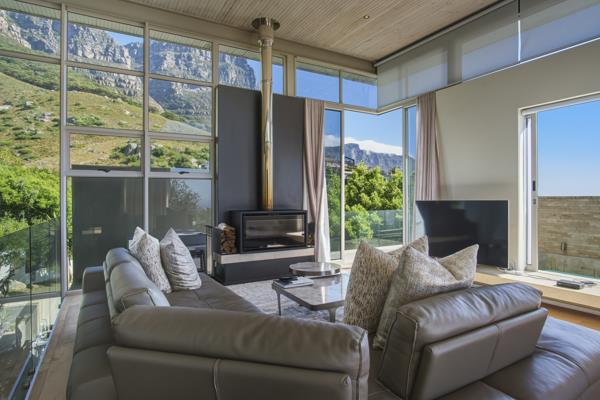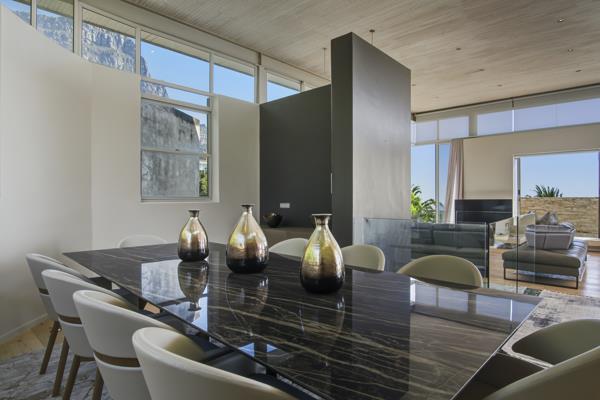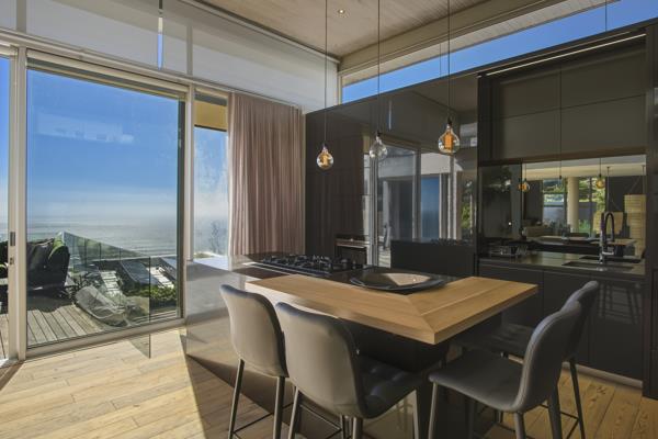 Set high up on the foothills of the Twelve Apostles mountain range, this elevated contemporary modern home is designed with double-volume floor-to-ceiling glass and elements of raw concrete.