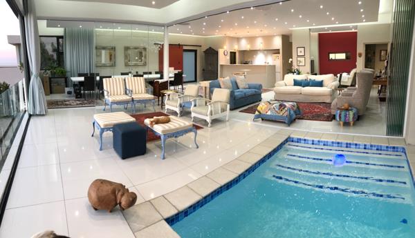 The middle level boasts a spacious master bedroom, as well as open plan kitchen (sep laundry/scullery), living and dining areas, as well as a spacious office. The views are spectacular. There is also an indoor plunge pool on this level.