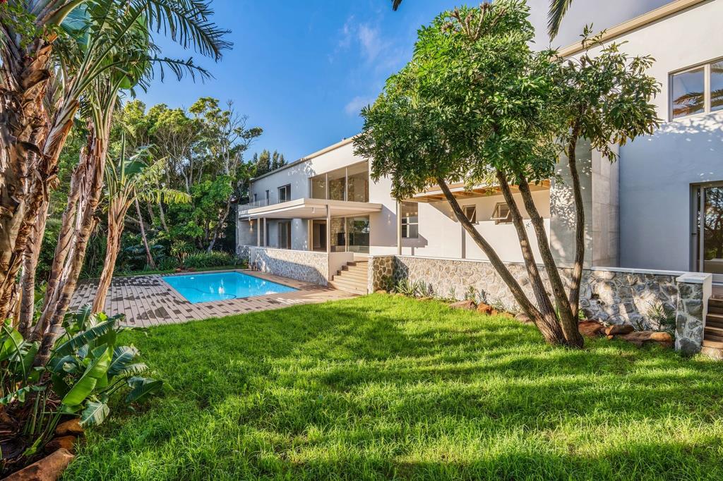 This expansive 5-bedroom en suite residence offers refined luxury on a generous 1,047m stand, with 600m under roof. Tucked away in a tranquil setting surrounded by mature greenery and partial sea views, this home is ideal for elegant living and entertaining. Features include a double-volume dining and formal lounge area, separate TV lounge, study, and a cinema room. The functional open plan kitchen is complemented by a separate scullery and laundry. Wellness is at the heart of this home with a private gym, sauna, shower, and dedicated massage room. The outdoor space boasts a large, landscaped garden, sparkling pool, and an undercover patio perfect for hosting.