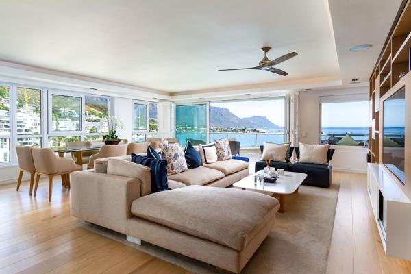 Super stylish Clifton Apartment on the rocks with never ending views.. This immaculate apartment has it all. Perfectly renovated to perfection, with state-of-the-art custom-built furniture. Open-plan lounge/dining room and kitchen with imported Miele appliances all included. All this leads to an undercover entertainment terrace with uninterrupted ocean and Twelve Apostle Mountain views. Large entrance hall with ample cupboards.