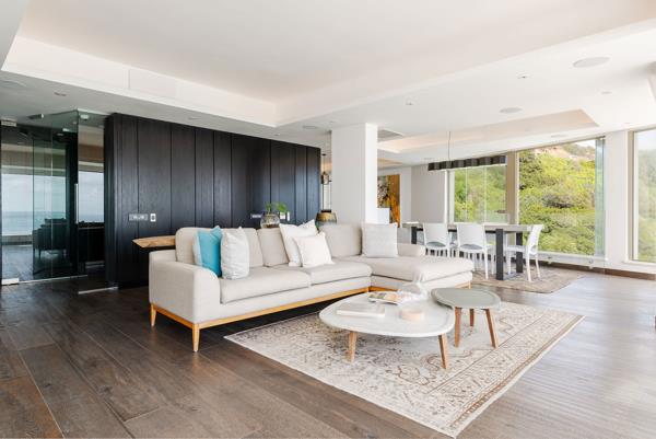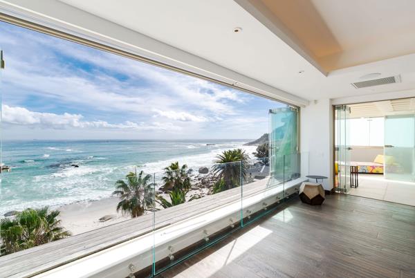 This exclusive apartment block is located on the white sands of Second Beach. The luxurious apartment extends over the entire floor and has been masterfully renovated with the finest finishes, bespoke detailing and premium fixtures throughout. There are only 6 apartments in the building, all with private and direct elevator access. Fabulous open plan living areas with glass folding doors and wrap-around windows leading to a private side facing terrace with a small splash pool, built-in braai and uninterrupted views of Clifton and all its beaches.