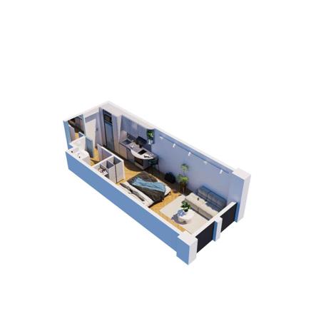 This well-designed studio apartment boasts a compact and efficient layout, making it an ideal choice for city living or a short-term rental investment. The open-plan features a built-in kitchen, a comfortable living and sleeping area and a modern bathroom with contemporary finishes and a walk-in shower.