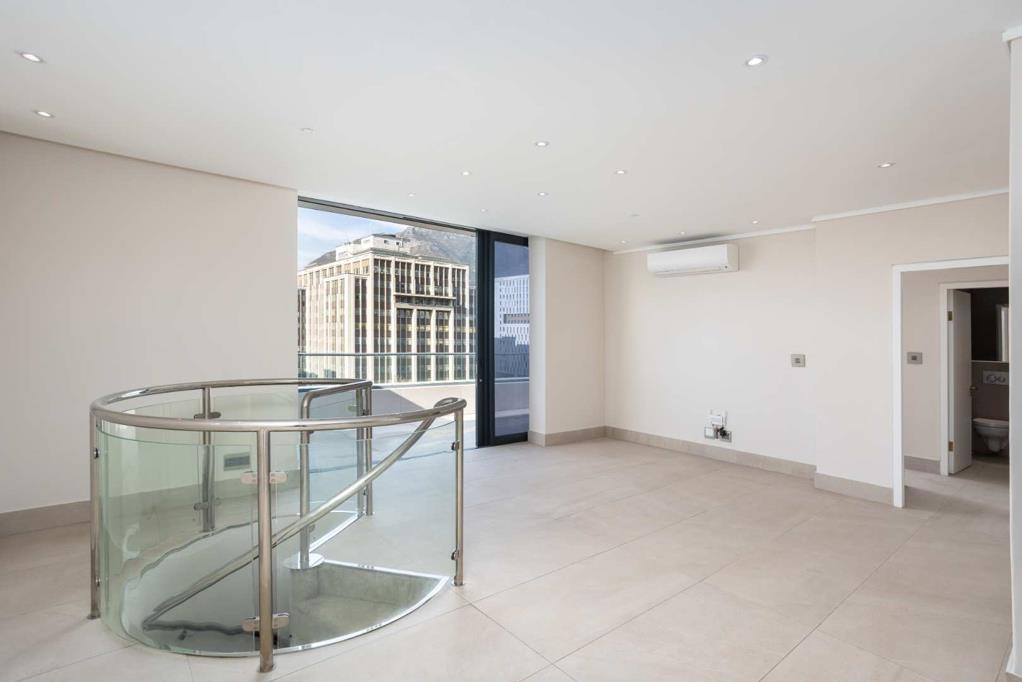 Welcome to the top floor of Zeeland Pier a striking three-bedroom penthouse apartment offering sweeping views of Table Mountain and the Cape Town Harbour. With 141m of interior space and a 25m private wraparound terrace, this home in the sky combines timeless architectural elements with modern convenience.