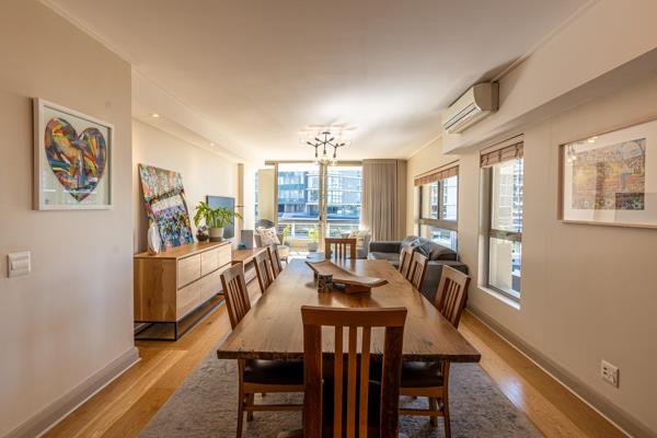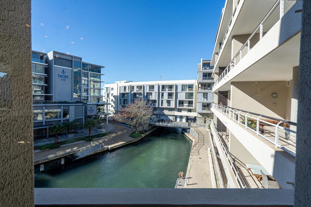 The stylish kitchen is a standout feature, fully equipped with high-end integrated appliances and sleek finishes perfect for entertaining or enjoying quiet evenings at home. The expansive living and dining area opens onto a spacious balcony with serene views of the canal.