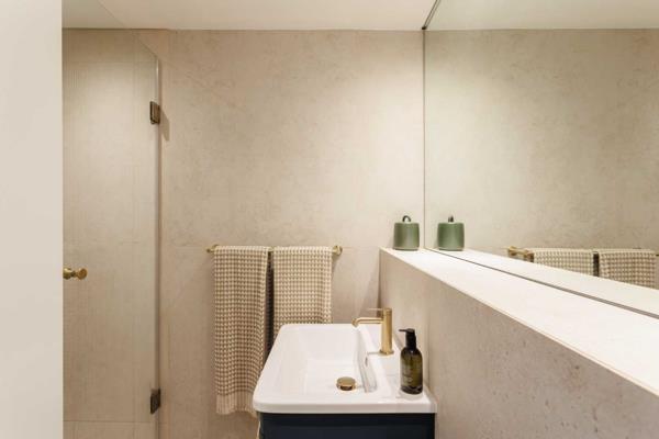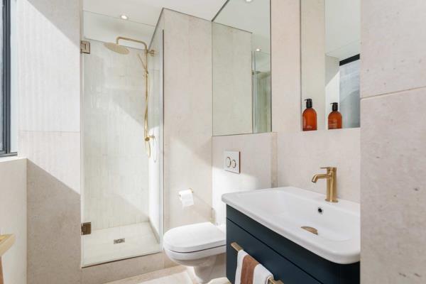 The open-plan layout creates a natural flow between the kitchen, dining and living areas. Floor-to-ceiling stacking doors open onto a spacious terrace where uninterrupted views of Cape Towns most famous landmark become part of everyday living. From early morning light on the mountain to golden sunsets over the harbour, the terrace offers the perfect setting for relaxed entertaining, al fresco dining or sundowners with friends.