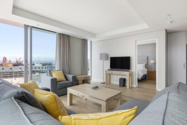 Situated in the highly sought-after The Yacht Club, this immaculate 86 m2 corner apartment offers refined city living with sweeping views of the harbour and Cape Town skyline.