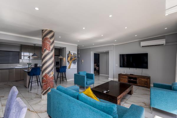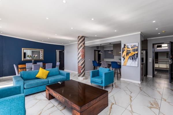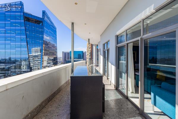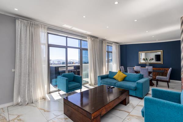 Set high above the city in The Icon, this 200sqm penthouse delivers uninterrupted 180 views across the harbour, Atlantic Ocean, CBD and Table Mountain.