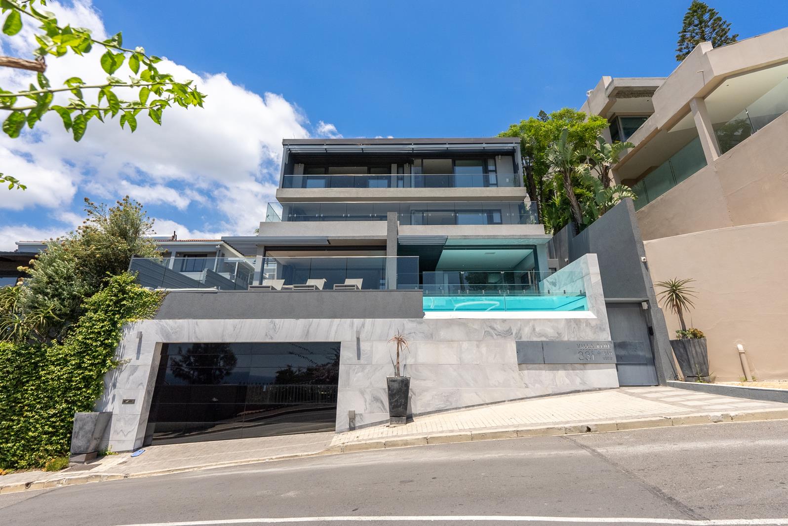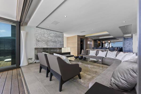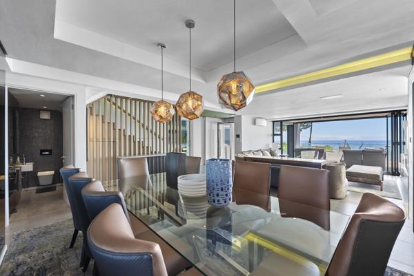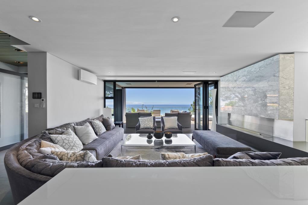 The property features 5 en-suite bedrooms, a gym, bar area, chef worthy kitchen fitted with top of the line appliances, large living and dining rooms that flow out onto a sun-drenched outside entertainment area with with a swimming pool, garden space and a view of the Atlantic Ocean.