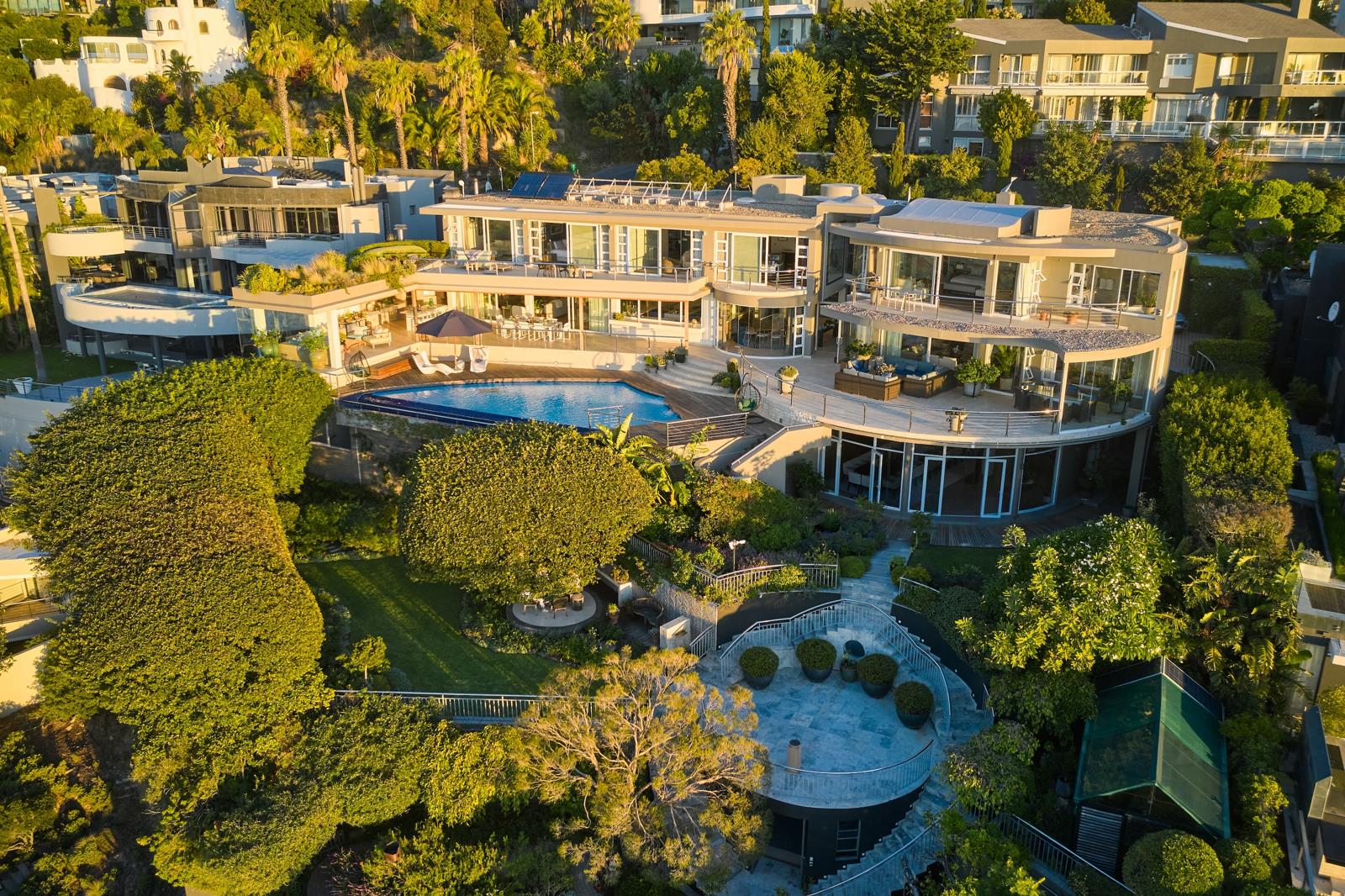Step inside to find bespoke interiors featuring a double volume entrance hall, with light filled spaces and amazing views. Spread over multiple tiered levels, this expansive home is one of the largest in Fresnaye, offering impressive entertaining spaces. There is a private elevator serving the top 3 levels of the home.