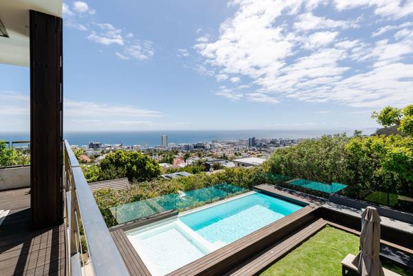 Life at the Top. Surrounded by Nature.. Set amongst mature trees, this striking modern Bauhaus-inspired home enjoys uninterrupted views stretching from Lions Head across the Atlantic Seaboard to Robben Island and beyond. A masterful interplay of natural textures and floor-to-ceiling glass blurs the boundaries between architecture and nature, creating a serene, light-filled sanctuary.