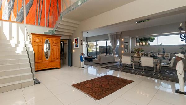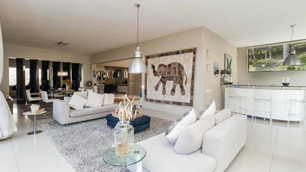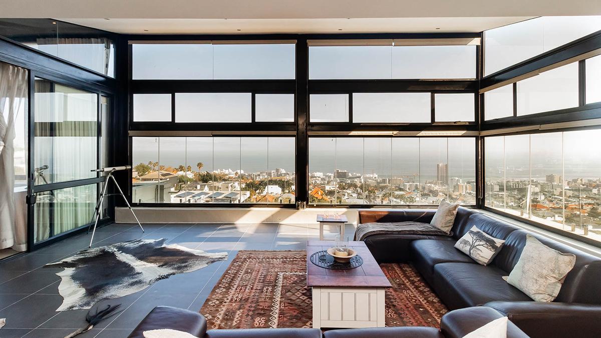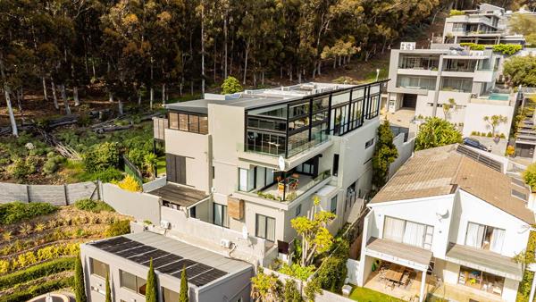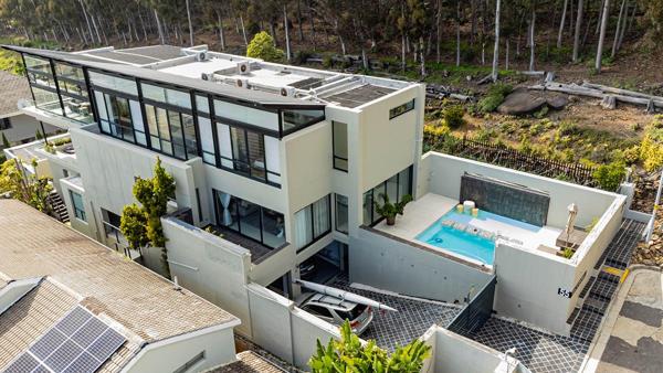From here, a staircase leads up to the first level, where is the main entrance to the house. Upon entering, you are welcomed into a spacious open-plan layout that includes three distinct areas: a TV lounge with a fireplace, a dining area, and a bar lounge area. The lounge opens to an enclosed balcony, while the bar extends seamlessly to the outside entertainment space, where a swimming pool with loungers offers breathtaking views of the national park. This level also features a guest toilet and a modern open-plan kitchen with a bar counter. Two bedrooms are located here: one with sliding doors leading to the balcony, showcasing magnificent views of the ocean and mountains, and another en-suite bedroom with a shower, which opens to the gardenperfect for childrens play and outdoor enjoyment.A striking staircase, highlighted by a towering wall of windows, floods the interior with natural light and brightness, while framing spectacular views of the national park. This leads up to the second level, designed with both family living and entertainment in mind. Here, youll find a large bar and entertainment room with floor-to-ceiling windows overlooking the ocean and town. Conveniently, this bar area can also be accessed from an additional exterior staircase, allowing guests to enjoy the entertainment space without disturbing the main residential areas of the home.