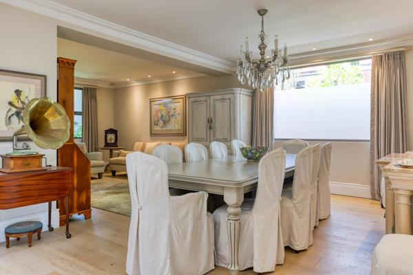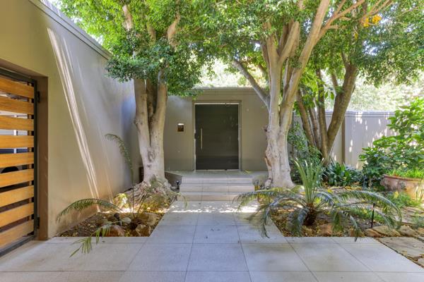 Tall sliding doors open out onto a spacious covered patio that features both a lounge and dining space, thus creating the ultimate setting for braais, gatherings, and year-round enjoyment.