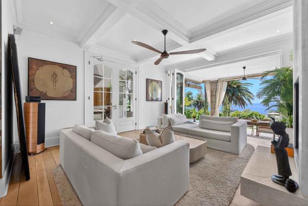 Welcome to this exquisite home, where timeless elegance meets modern sophistication. This beautifully renovated Entertainers Dream residence boasts classic finishes and elegant proportions, highlighted by stunning wood and stone accents. The elevated position, high ceilings, neutral colors, ambient lighting, and numerous palm trees create an ambiance of superlative style, offering complete privacy and breathtaking sea views.