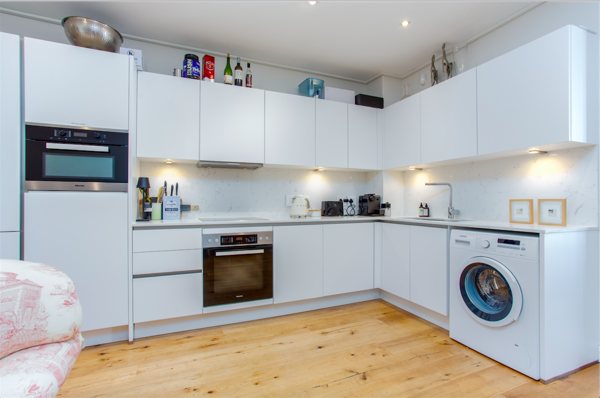 Modern, light & bright kitchen with Miele appliances.