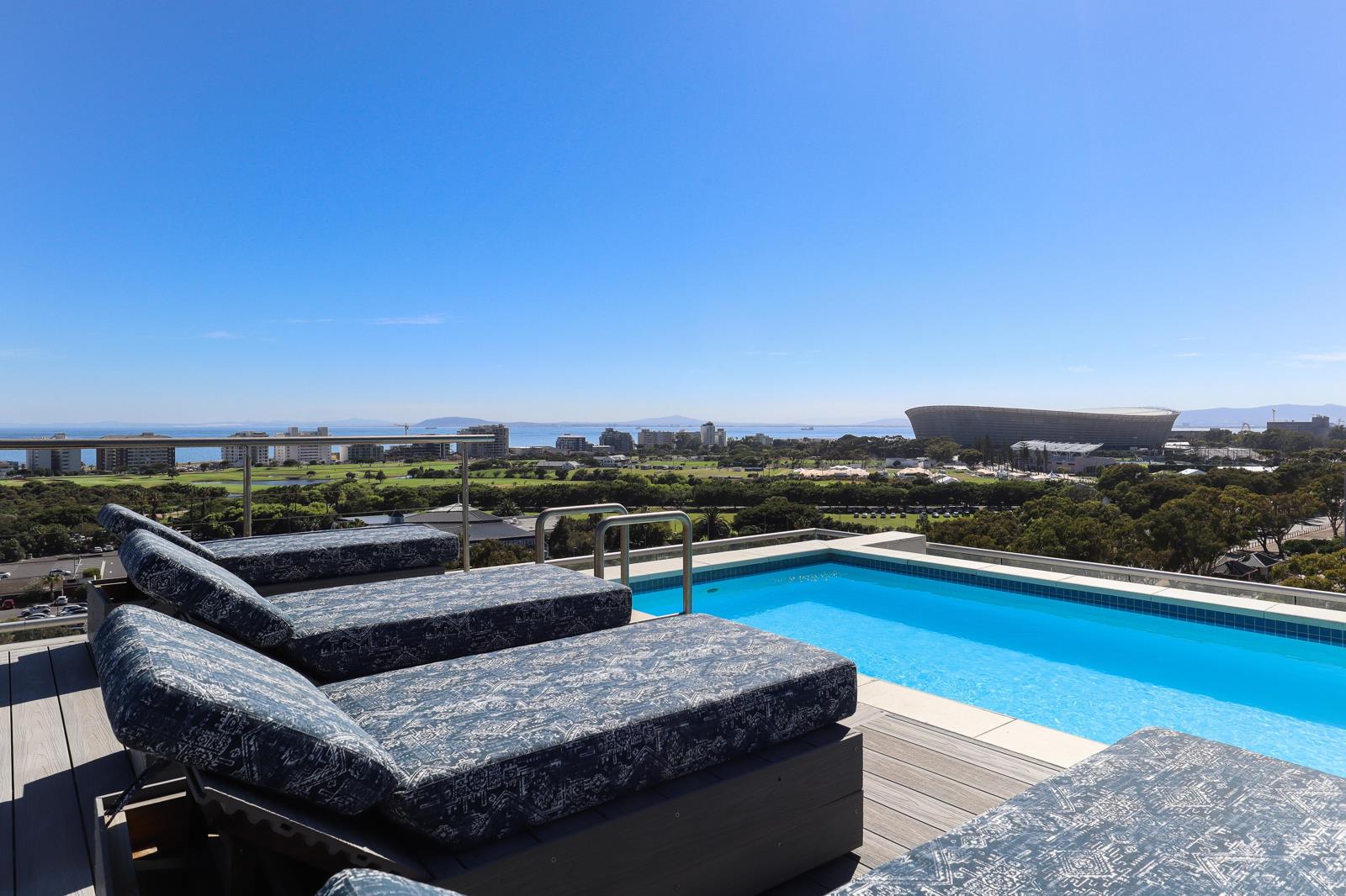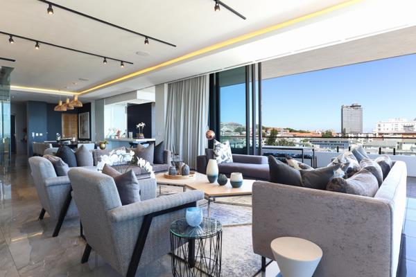 Set on the top floor of modern complex overlooking the bustling suburb of Green Point with unobstructed ocean, mountain, stadium and park views, this duplex penthouse offers the full package.