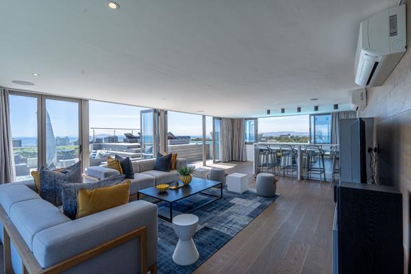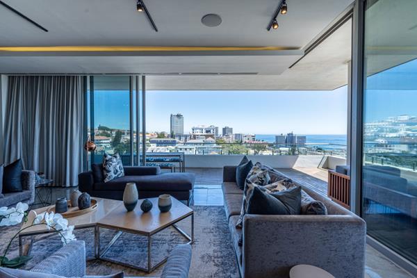 A World Class Penthouse - with 360 deg Panoramic Views. Rare opportunity to purchase one of the most prestigious apartments in Green Point. Situated on 2 levels, the lower level is comprises a beautifully designed expansive living and dining area, leading onto wrap around balconies, perfect for outdoor relaxation and entertaining. The Internal is 285sqm with a terrace of 68sqm and a patio of 263sqm equaling a luxurious home space of 616sqm. Open plan kitchen fully equipped with top of the range appliances and sleek countertops. Separate TV room and wine lounge. Experience unparalleled luxury and comfort in the exquisite 3 bedrooms (all en suite), designed for modern living with stylish interiors and state of the art finishes.