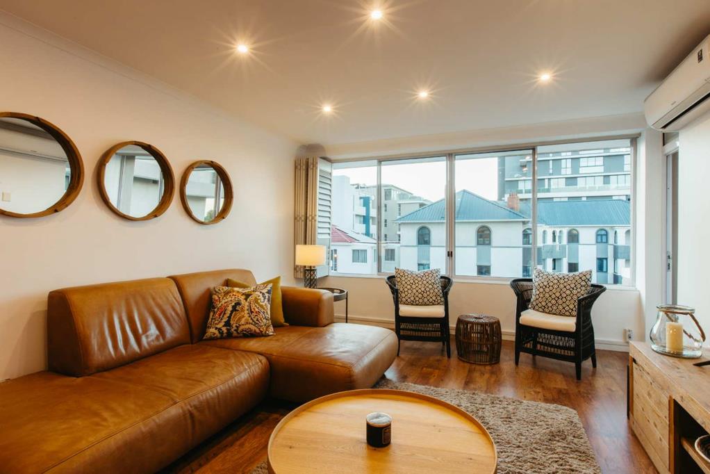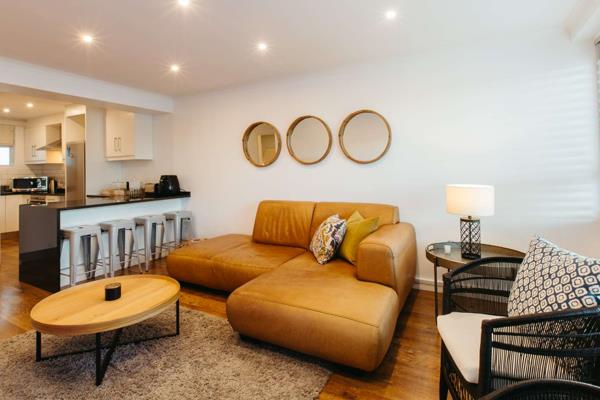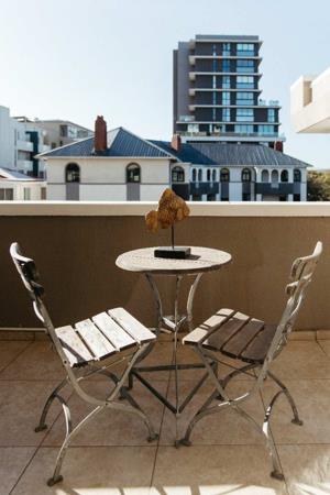 This two-bedroom apartment is situated in a sought-after block in Green Point, one of Cape Towns trendiest areas. It offers an open-plan kitchen, dining, and lounge area, with a practical, well-laid-out design. The two bedrooms are spacious and include ample built-in storage. A balcony, accessible from the main bedroom and the lounge, is the perfect spot to soak in the lovely afternoon sun and offers views of the Green Point Stadium. Stylish white aluminum American shutters frame the windows and doors for a clean, modern finish.