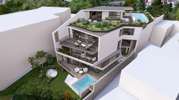 The private roof terrace is designed for leisure and entertainment, featuring a private pool, bar, and lounge area allowing summer evenings with friends against the backdrop of the ocean. The panoramic and mesmerising sea views from the terrace are simply breathtaking, providing a serene escape from the hustle and bustle of daily life. Direct entry from a double garage plus an additional parking bay ensures security and convenience. In addition there is a 10sqm storeroom/wine cellar. Total expansive size of 523sqm comprising 407sqm internal and 115sqm external. Each unit has its own separate entrance, there are no communal areas.