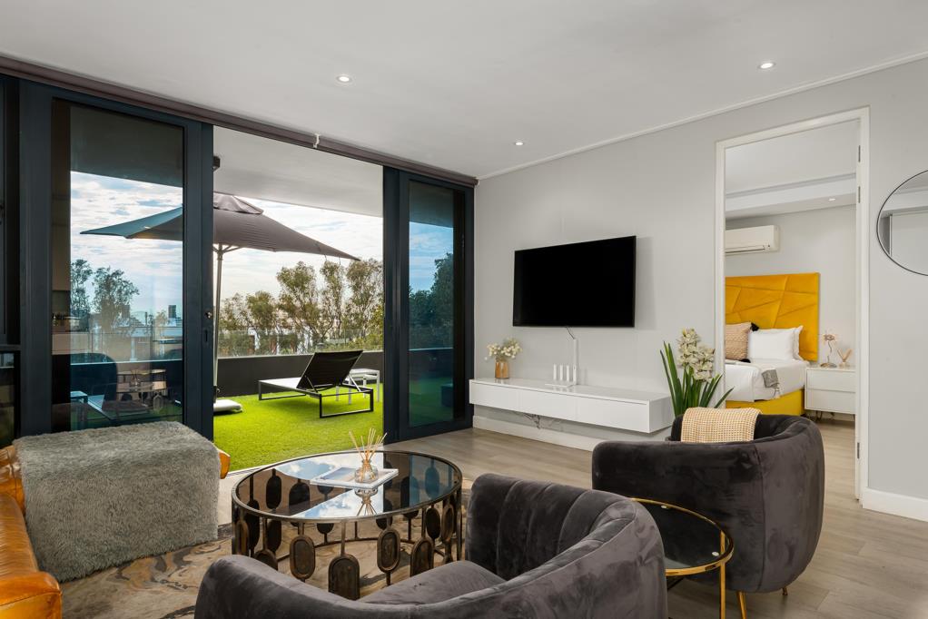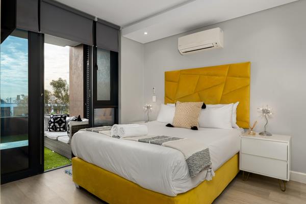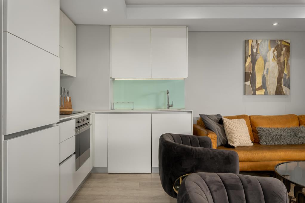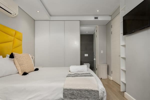 The open plan living area flows seamlessly, creating a sense of space and comfort, while the bedroom offers privacy and style. The buildings design captures sweeping views of the Atlantic Seaboard, Table Mountain and the city skyline.