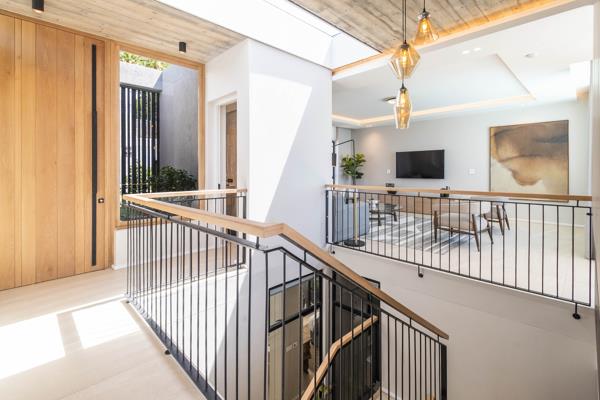 Oggie flooring throughout the stairwell with a custom-designed balustrade