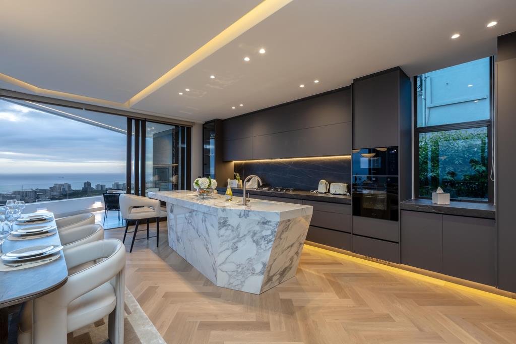 Located at the base of Lions Head, the penthouse offers privacy, direct access to nature, and close proximity to Sea Points shops, restaurants, and promenade.