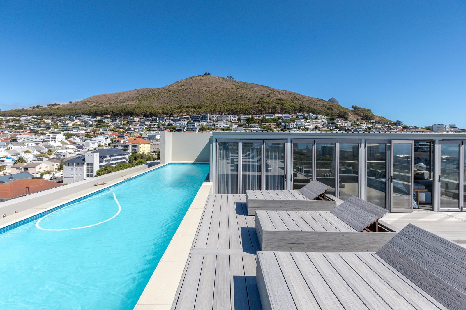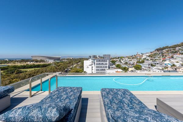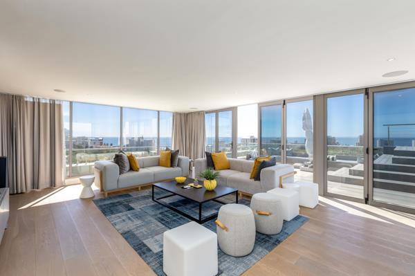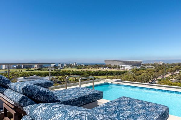 Positioned at the summit of a secure contemporary residential complex, this exceptional duplex penthouse enjoys sweeping, uninterrupted views across the Atlantic Ocean, Table Mountain, Green Point Stadium, and surrounding parklands.