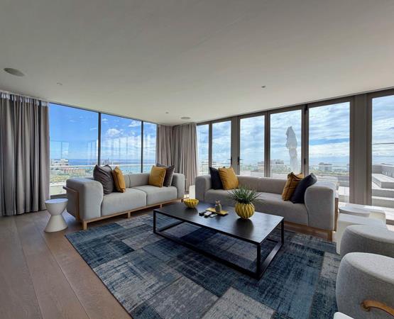 From this elevated vantage point, enjoy spectacular panoramic views of the Atlantic Ocean, the iconic stadium, and the vibrant Green Point skyline.