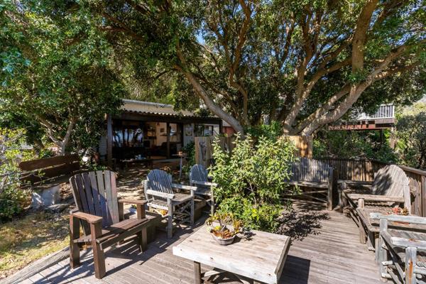 Lovely wooden deck surrounded by trees with pretty sea views.