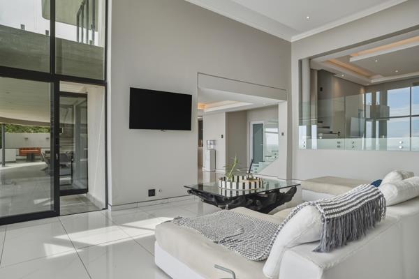 Spanning five impeccably designed levels, the residence showcases expansive floor-to-ceiling glass doors and windows that frame the dramatic scenery and flood the interiors with natural light.