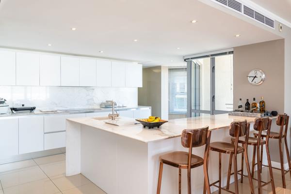 Step into refined luxury with this meticulously renovated 317sqm apartment, perched majestically on the Platinum Mile of Mouille Point, Cape Town. Boasting an exquisite elevation, this home offers three spacious bedrooms, each with its own en suite bathroom and balcony, along with a convenient guest powder room.