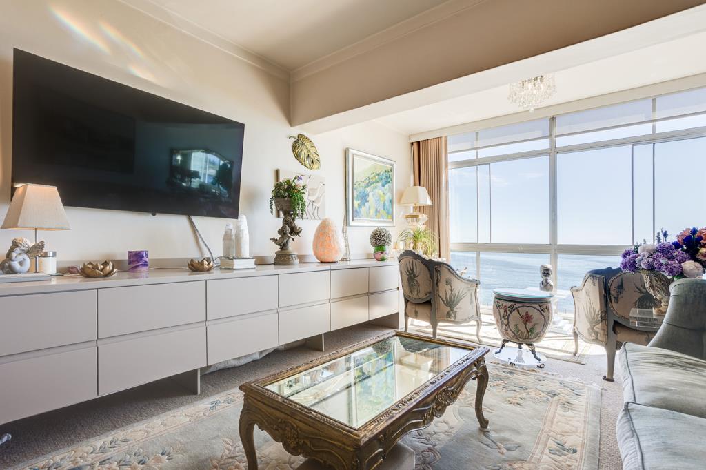 This beautifully renovated one-bedroom unit boasts magnificent sea views from both the living area and the bedroom.