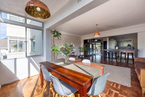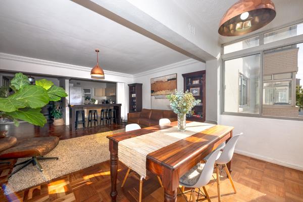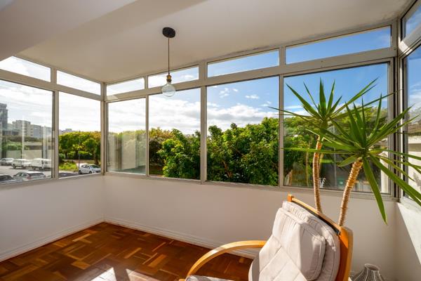 The apartment features 3 well-appointed bedrooms, including one with sea views overlooking the famous promenade and Atlantic Ocean, and a modern bathroom. A spacious entertainment area flows seamlessly into the open-plan kitchen, offering a bright and airy atmosphere enhanced by lovely natural light and large windows with outlooks over Green Point Park. Beautiful wooden flooring throughout creates a sense of warmth and charm.