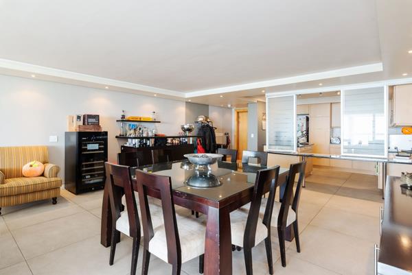 Exclusively Marketed by Pam Golding Properties.. This spacious residence offers three generously proportioned bedrooms, including a luxurious primary en suite bedroom that is sea-facing, capturing both natural light and breathtaking views. The two additional bedrooms are well sized and share a well-appointed second full bathroom, making it ideal for family living or hosting guests. The third bedroom has mesmerising golf course, urban park and mountain views. The open-plan kitchen flows into a vast reception area, comprising both lounge and dining spaces - ideal for modern living and effortless entertaining. Extending from this is a scintillating, inviting extra-large enclosed balcony, also sea-facing, where residents can enjoy uninterrupted vistas, abundant natural light, and a true sense of indoor-outdoor living.