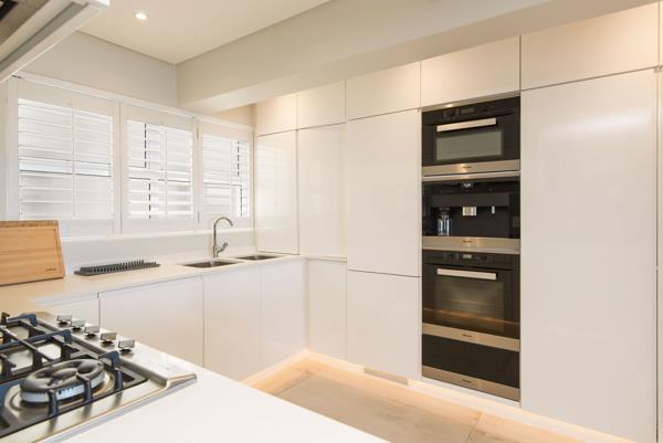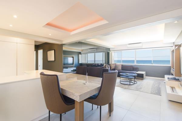 Two of the bedrooms enjoy sea-facing views, while the master suite opens onto a 20sqm private terrace featuring custom-built wooden furniture an exceptionally rare feature in Mouille Point. Included in the sale are all new Miele appliances, double undercover parking, a storeroom, and the full contents of the apartment. Pet friendly.