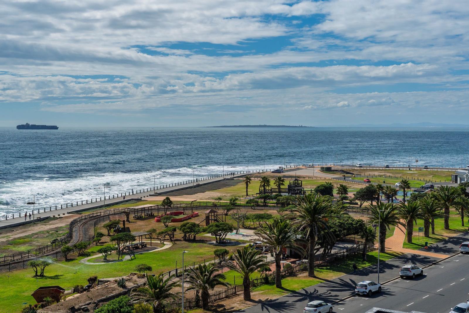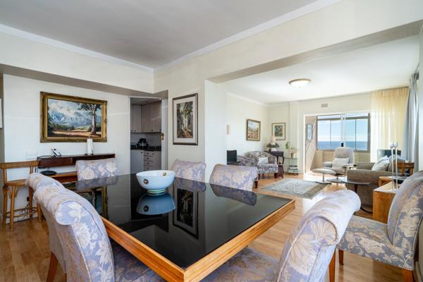 Retirement Apartment with Magnificent Views. Retirement building along the promenade in Mouille Point. Neat condition in the northern corner, with sea views. Sold unfurnished. Main bedroom is large with sea views. Lounge & open-plan dining-room areas are spacious. Second, smaller bedroom with BIC.