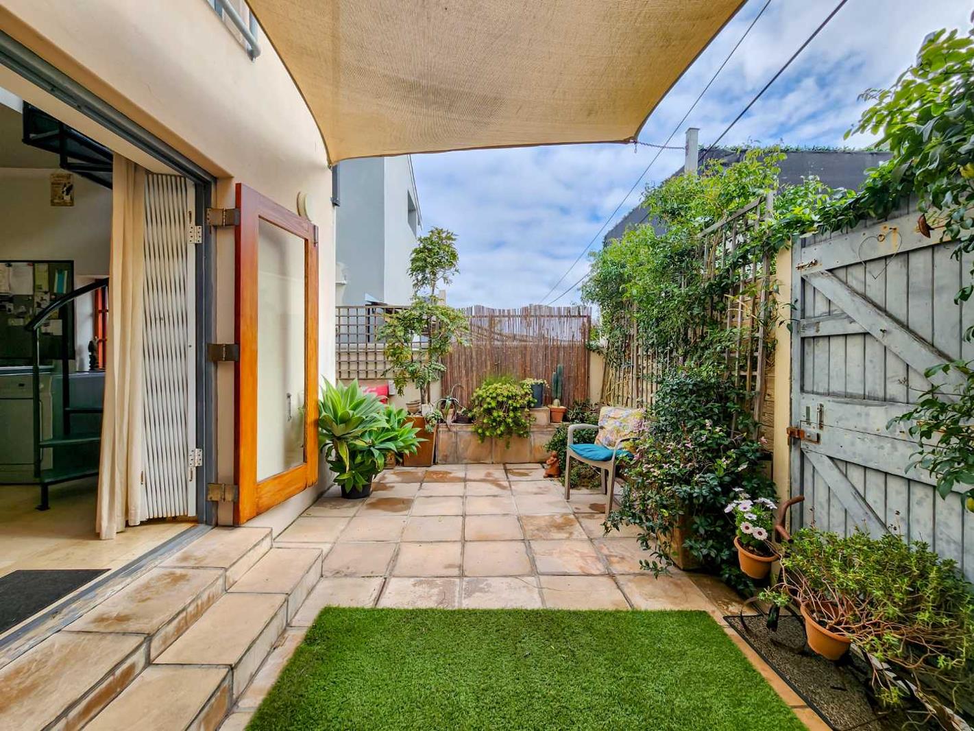 2 beds, 2 baths (both en-suite), open plan living area, private courtyard at the back, outdoor space in front plus 1 car port parking bay
