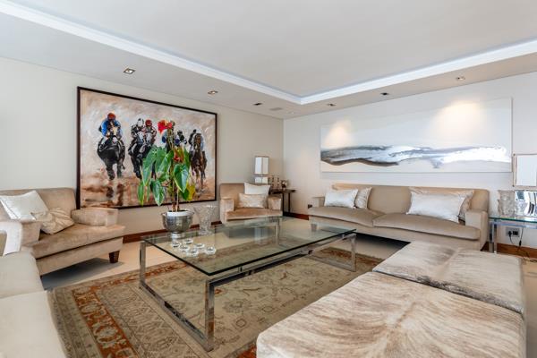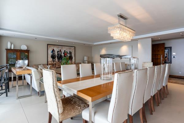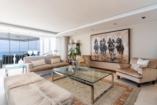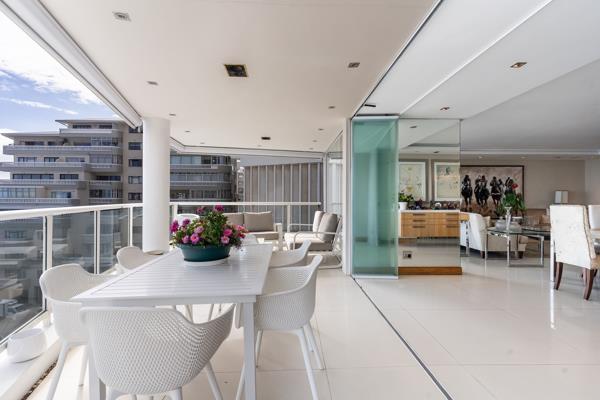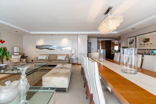 PLEASE NOTE THAT IT IS CURRENTLY A 2 BED APARTMENT - However it was originally a 3 bed and could easily be changed back prior to transfer and could be factored into the sale agreement. This exceptional single-level residence offers the perfect blend of luxury, comfort, and convenience. On entrance is an expansive living and dining area flowing seamlessly onto a spacious balcony with uninterrupted sea views. The spacious dining area accommodates a 14-seater dining table. The modern kitchen and bar area are set behind the main living space, offering sea views. Off this is an additional pyjamaTV lounge. The kitchen is fitted with premium Gaggenau appliances, including a double oven, gas hob, integrated microwave, and a double-door fridge. A separate scullery provides additional storage space.