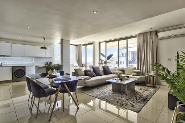 The open plan layout flows effortlessly from the designer kitchen towards the living space and out onto a balcony from where to enjoy sweeping views over the Atlantic Seaboard. This is the perfect sanctuary in the city.