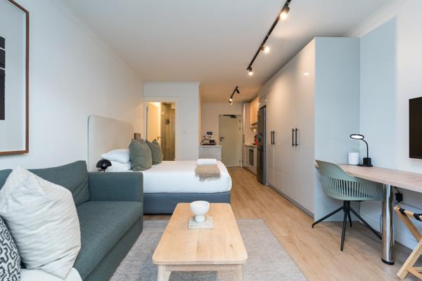 Step into serenity in this stylish 30sqm studio located in The Sage, one of Sea Points most beautifully designed and Airbnb-friendly buildings. This modern unit is the perfect blend of simplicity and calm, ideal for both short stays and steady rental income.