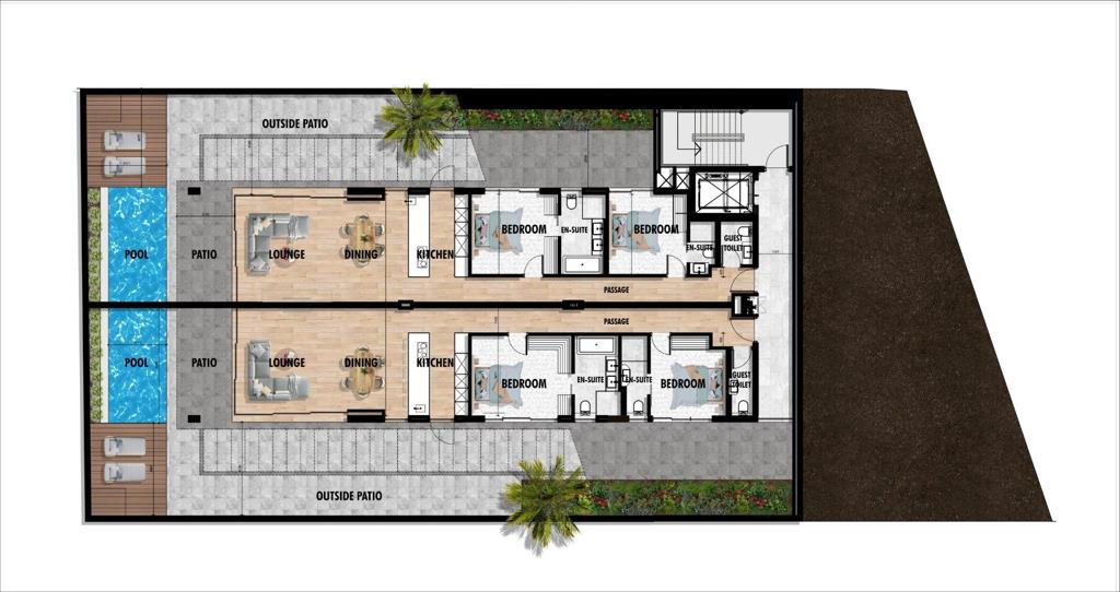 These ground-floor homes feature seamless indoor-outdoor flow, each with a private landscaped garden and splash pool. Ideal for pet lovers or those who enjoy outdoor entertaining, these units combine lock-up-and-go simplicity with premium comfort.